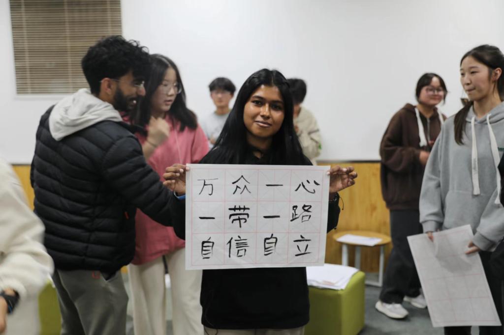 随后,英语专业员工和国际职工分别通过中英文绕口令、全球美食问答、体验中国书法艺术等形式,加强互动交流、深入探讨“一带一路”倡议的丰富内涵。
