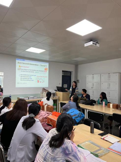 9月27日下午,大英二部全体教师在临潼2-315室进行本学期第二次教学法活动。本次教学法活动围绕第一单元Working Holiday和第二单元Conspicuous Consumption展开课堂创新研讨。郭钧华老师展示了主课文How My Working Holiday Changed Me?的教学设计,她从课文结构和文化背景两个方面深入挖掘了课文的思政内涵,展示了知识、能力、素质三个目标达成的新途径。