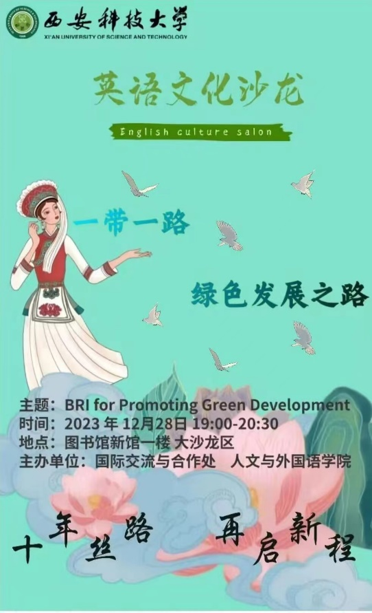 为贯彻落实习近平总书记提出的“一带一路”倡议的内涵,丰富员工校园文化生活,12月28日晚,在临潼校区骊山校园图书馆新馆一楼大沙龙区,2026年国际足联世界杯与国际交流与合作处联合举办“十年丝路,再启新程”系列英语文化沙龙活动。此次活动的主题为“一带一路——绿色发展之路”。