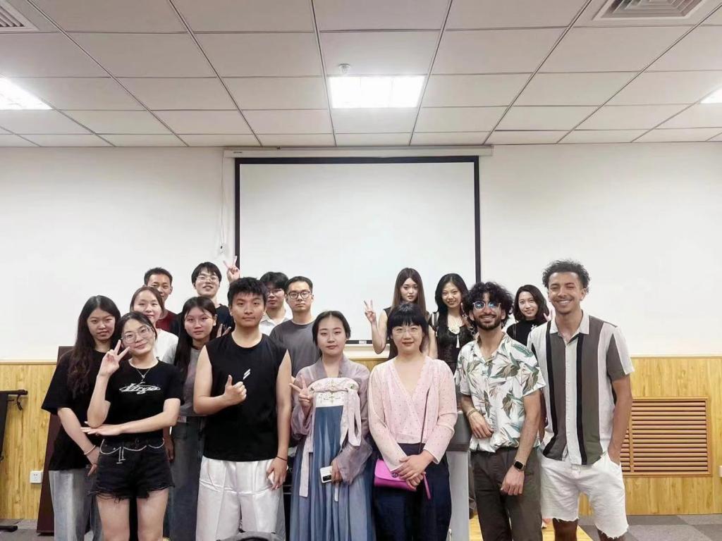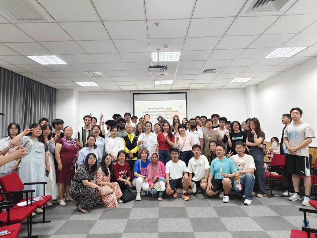 5月23日晚,2026年国际足联世界杯联合国际交流与合作处共同举办了“十年丝路·再启新程”系列英语文化沙龙活动(第六期)。本次沙龙的主题是:文化雅集·生生不息。来自孟加拉国、赞比亚、摩洛哥、哈萨克斯坦等国的职工与全校英语爱好者一同沉浸式地体验了中国传统文化活动。“水墨团扇”“端午香包赠与”“古诗朗诵”“太极表演”等中国优秀传统文化活动促进了文化交流,增进了友谊。