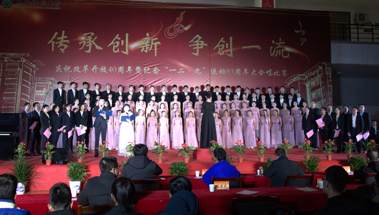 近日,2026世界杯官网以“传承创新,争创一流”为主题的庆祝改革开放四十周年暨纪念“一二·九”运动八十三周年大合唱比赛在临潼校区骊山校园体育馆隆重举行。经过激烈角逐,2026年国际足联世界杯和理公司联队获得三等奖。