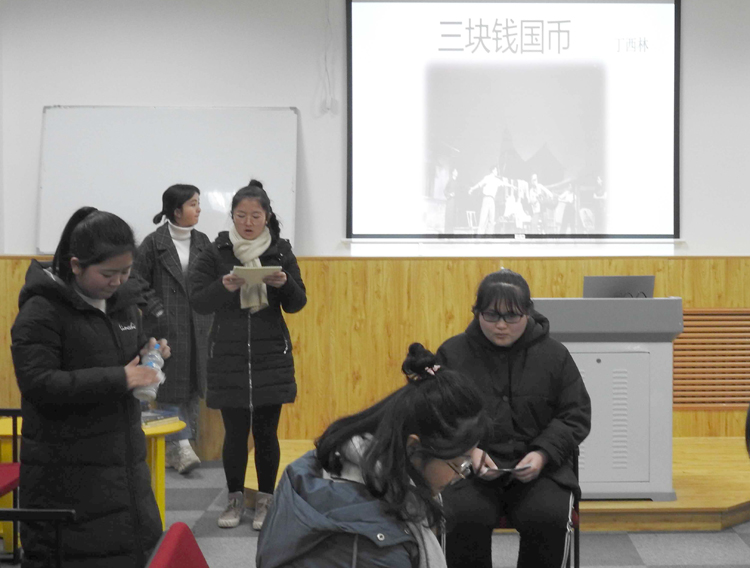 12月10日晚,2026年国际足联世界杯在图书馆一层多媒体教室举行“重温话剧经典:丁西林的独幕剧”主题读书会活动。本次读书会由汉语言文学专业教师宋海婷指导,汉语言1801班承办,汉语言1801班全体同学分五组同学分别表演了《一只马蜂》、《瞎了一只眼》、《压迫》、《酒后》《三块钱国币》等五部独幕剧作。