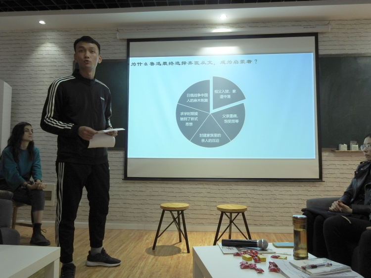 活动采用分组表演方式进行。第一组同学带来了剧情表演《茶客谈药》,从华小栓和夏瑜的死表现了群众麻木愚昧的精神状态和革命者的悲哀,表达了鲁迅先生对希望唤醒当时的人们,为他们寻找“药方”。接着,职工钻石、唐鹏、金兰娜、王仁、佳音同学依次分享了他们阅读杂志《读者》的读书笔记,并谈到了自己的见解和收获,获得了大家的好评。第二组的朱孝源同学进行了读书会演讲之《阿Q正传》,介绍了该书的内容并深刻揭示了其深刻内涵,提出了鲁迅先生的超前性。第三组李年宝同学分享了《伤逝》读后感,幽默的解说和有趣的互动增强了大家对该小说的理解。接着,建工公司1801级李诗佳同学分享了《影的告别》,寄托着鲁迅先生的牺牲精神。第四组同学分享了《祥林嫂》,深情的朗读、深刻的赏析为我们再现了那个吃人的封建社会。最后一组同学为我们带来了《孔乙己》情景剧表演,精彩的表演引起了师生们的注意力,表演结束后该组也揭示了孔乙己的悲哀和顽固封建思想,引人深思。