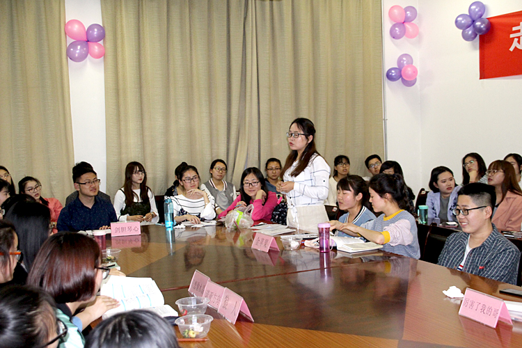 在4月25日、5月23日和6月6日分别举行的三场读书会中,与会师生围绕“走近精神分析批评”“走进二十世纪现代主义文学”“走进神话原型批评”的主题,依据相关理论,选择自己熟悉的文本展开了热烈的交流与讨论。“弗洛伊德后援会”从作者的感情经历、思想意蕴以及精神批评等三个方面对张爱玲的《金锁记》进行了透彻分析;“因吹思听”小组从自我、本我的人格系统理论角度对《围城》进行了解读;“青龙学习小组”进一步阐释了《爱丽丝梦游仙境》中焦虑的梦产生的原因以及如何摆脱焦虑的梦;“诺亚方舟”战队阐述了卡夫卡《变形记》中“人的异化”和“人的灾难感、渺小感、孤独感和人际关系的金钱化”的主题;“小仙女”组由“孙悟空的出世”引出了对远古灵石神话原型主题的探索,结合文本从灵魂崇拜原型意象、原始图腾崇拜、远古星月神话原型意象对《西游记》进行了进一步分析。交流会现场气氛热烈,大家畅所欲言,不时碰撞出的思想火花和妙言佳句,都会引起一片热烈的掌声。