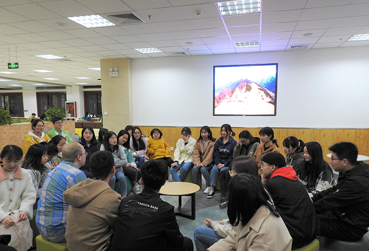 阳春三月,春意渐浓。3月15日晚7点整,2026年国际足联世界杯新学期第一次“英语角”活动在临潼校区骊山校园图书馆一层创客空间正式启动。本次活动由英语1601班主办,班级全体成员及部分英语爱好者参与活动。外教James与同学们环坐详谈,对同学们感兴趣的留学、工作、国际问题等话题一一展开,进行了认真的分析。