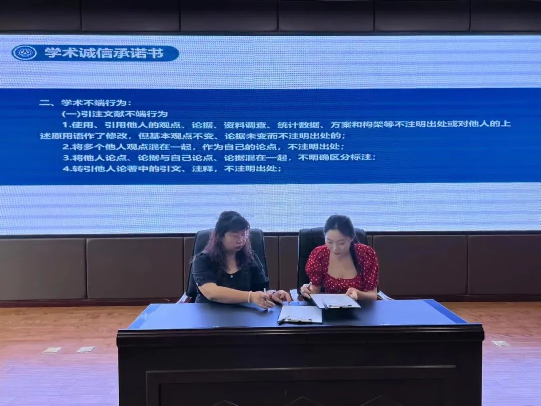 会上,费秀水为2023级员工军训教官颁发聘书。导师代表张辉、2023级研究生代表杨皓月,代表全体研究生导师和研究生进行研究生学术诚信签约。