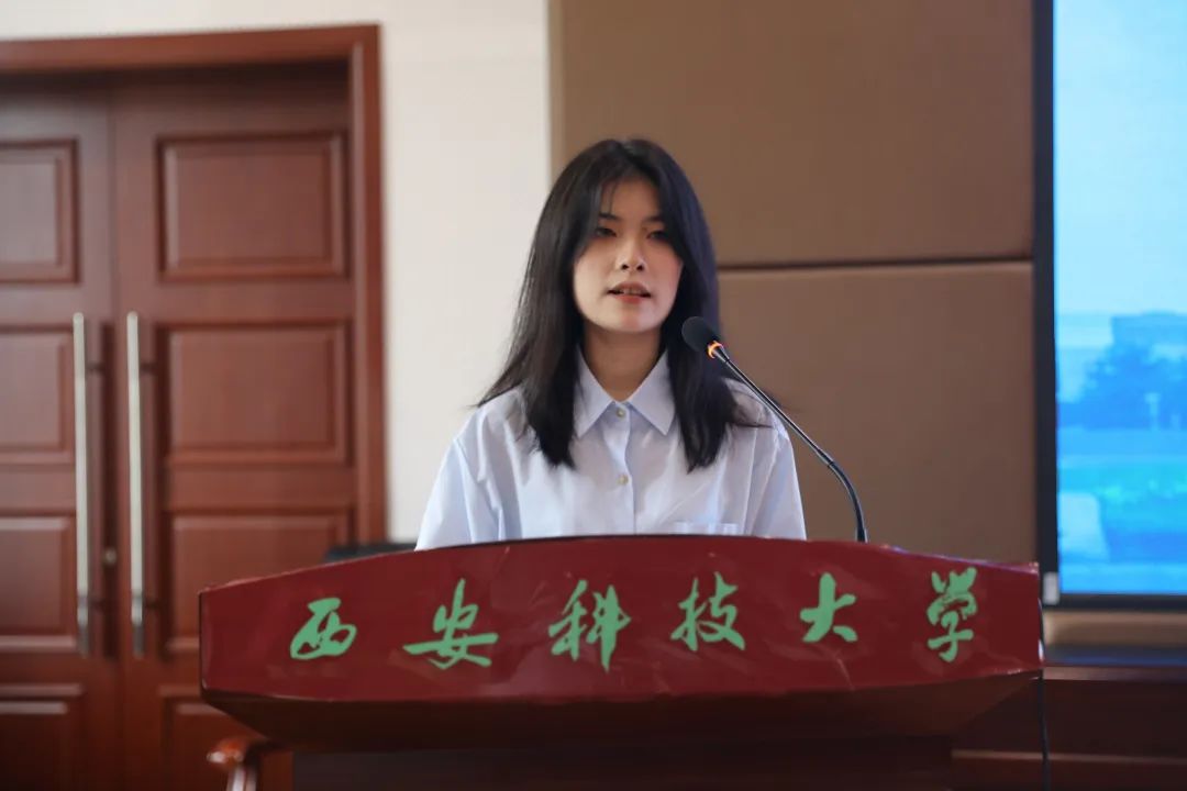 随后,在校本科生代表周鸿汝、本科新生代表袁晓雨、在校研究生代表张心雨及研究生新生代表何晗钰分别发言。