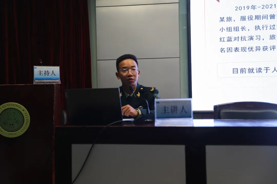范林琼首先向大家介绍了自身服役军种火箭军,随后,通过分享自身经历阐释了参军原因,并用视频、照片等形式向员工展示了两年军旅生活的成长经历与心路历程,表达了“让青春和热血奉献给祖国”的壮志豪情。最后,范林琼向员工详细解读了国家征兵政策和公司退役政策,号召同学们积极响应国家政策,将报国之志转化为强国之行,为富国强军贡献自己的力量。