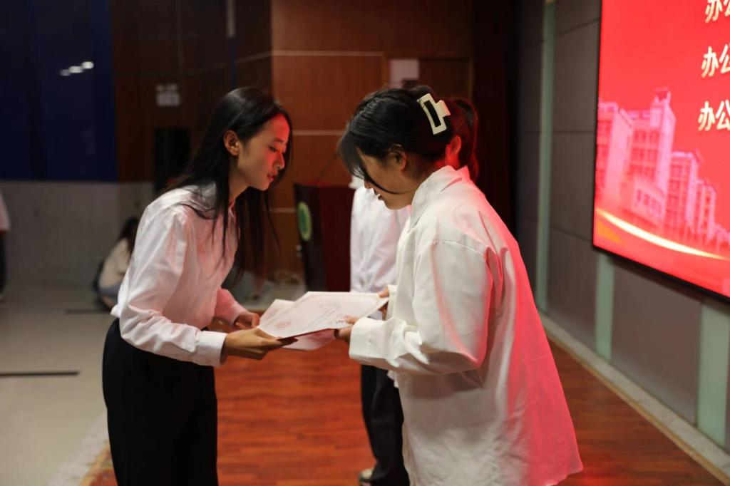 团委副书记杨博婷宣读新一届团委员工干部聘任文件,上一届主席团成员分别为新一届部长颁发了聘书。
