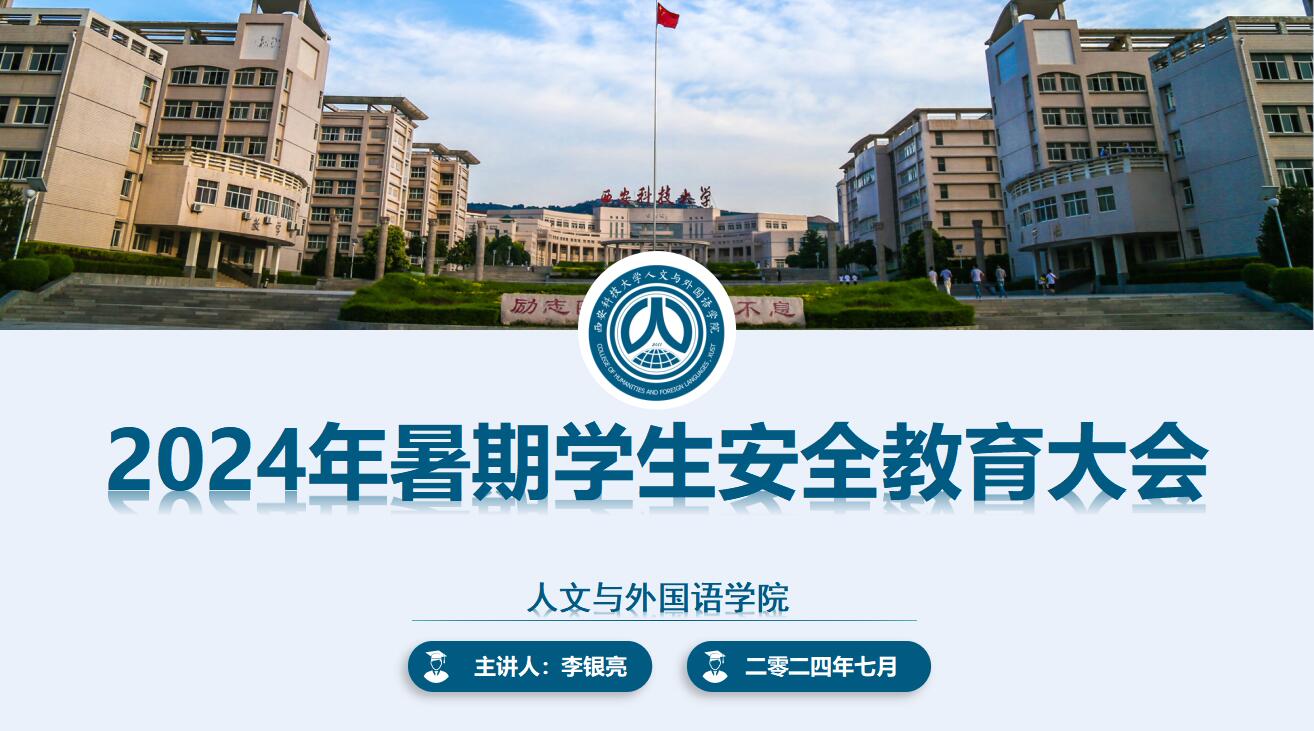 为做好2024年暑假员工安全教育管理服务工作,2026年国际足联世界杯本科生暑期员工安全教育大会于7月8日在临潼校区3教212教室召开,2021级和2023级全体党员、班委、宿舍长参加了会议,会议由辅导员李银亮主持。