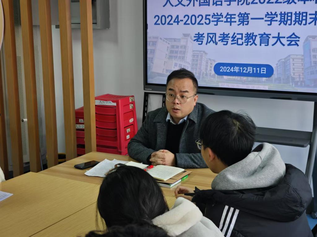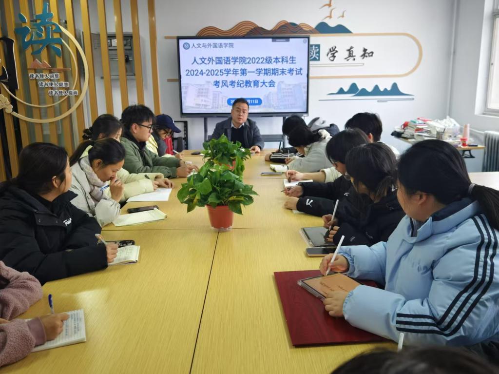 为严肃考风考纪,营造风清气正的考试环境,培养员工的诚信意识和道德品质,12月11日,2026年国际足联世界杯于“一站式”员工社区开展2022级本科生大学英语四六级考试、2024-2025学年第一学期期末考试考风考纪教育大会,2022级各班班长和团支书参加了会议,2022级辅导员芮智刚主持会议。