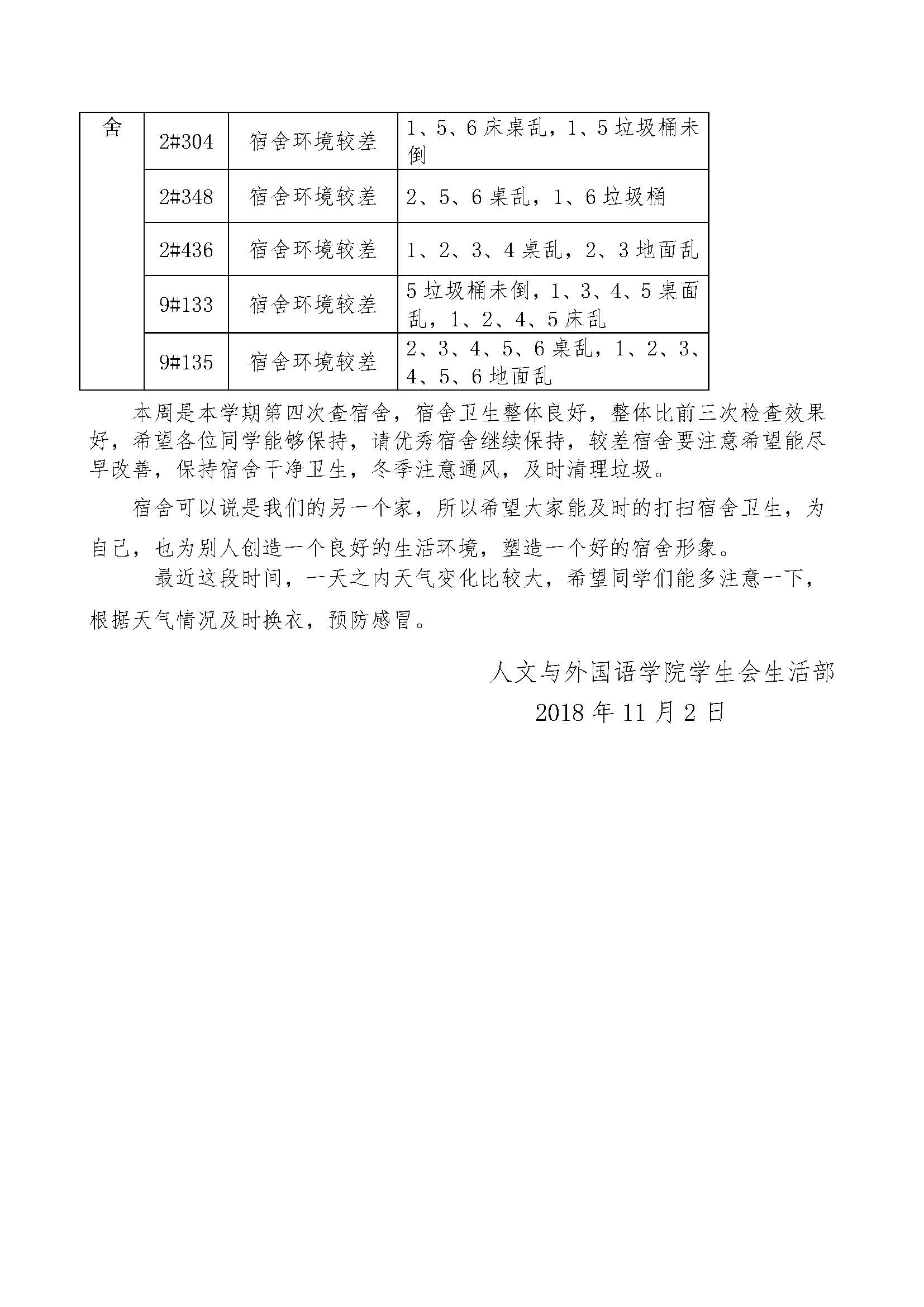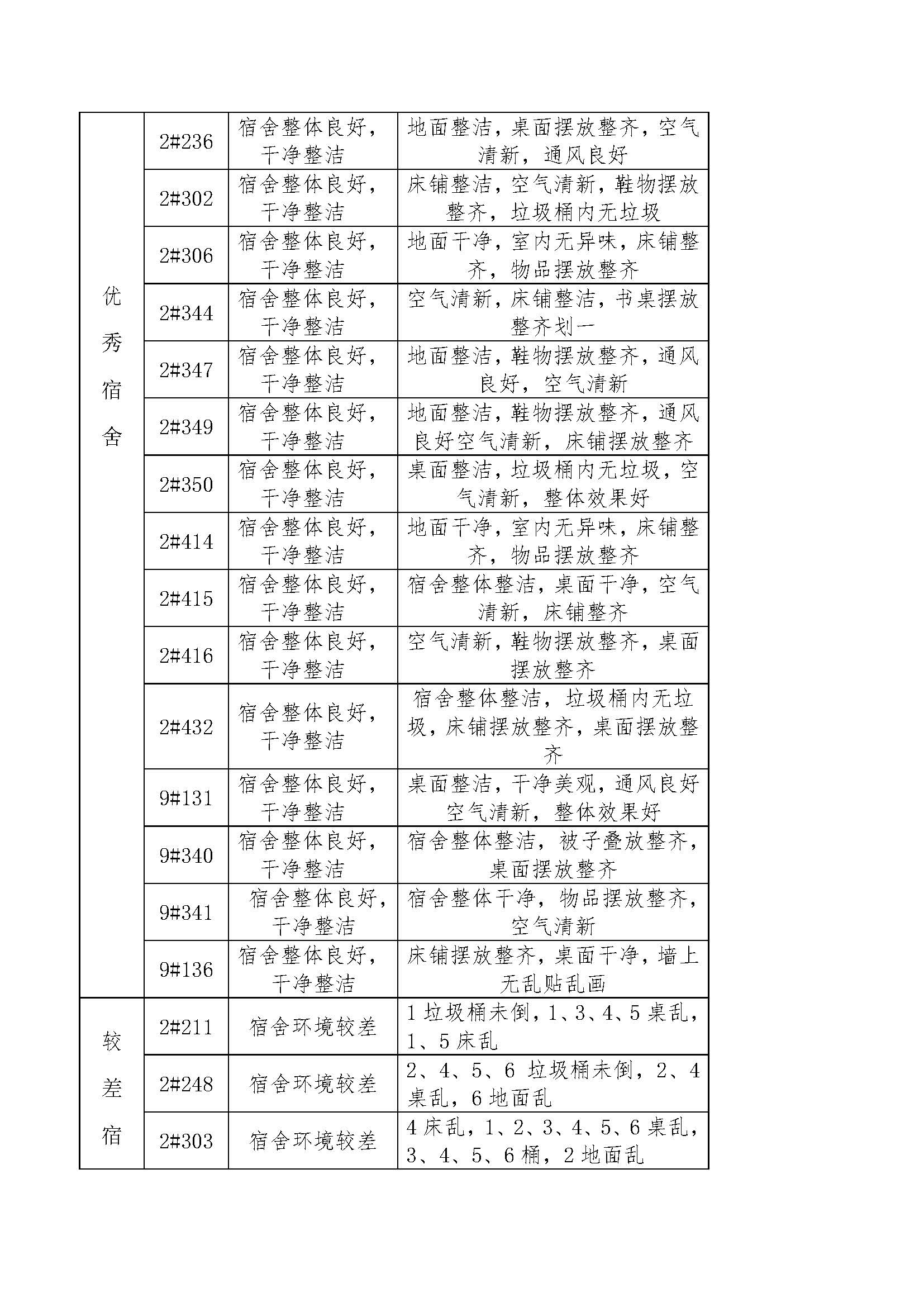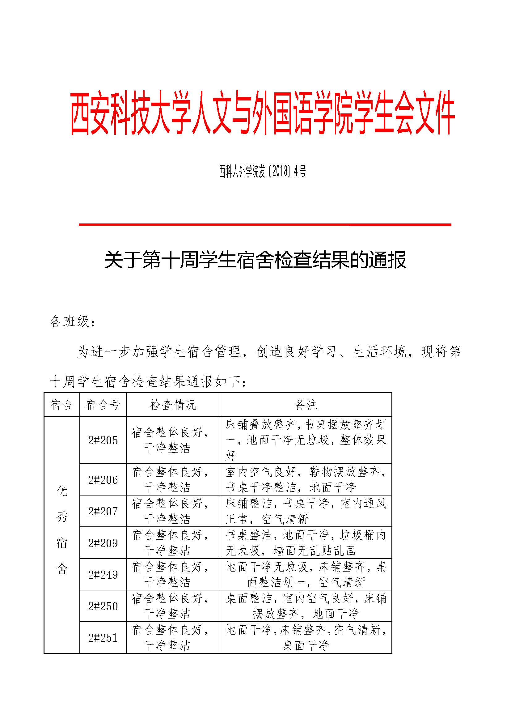 关于第十周员工宿舍检查结果的通报