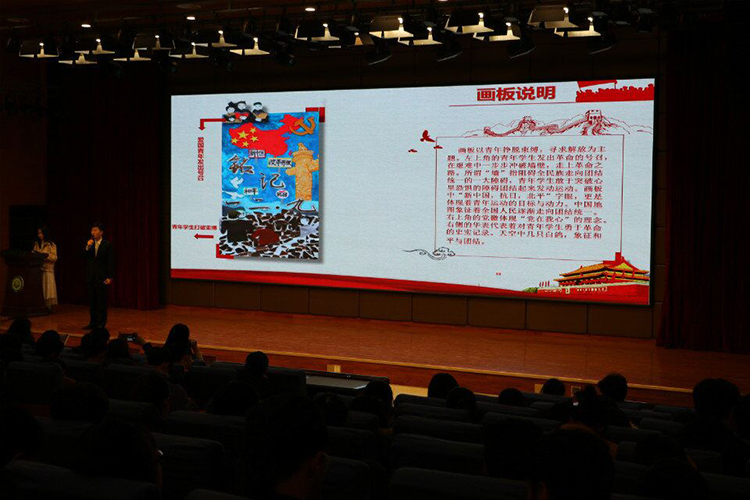 19时许,比赛在热烈的掌声中开始。本次比赛采取百分制,由老师评委打分、员工评委打分和微信投票三部分构成,比赛成绩现场公布,最终得分以30%计入“一二•九”大合唱成绩。来自15个公司的参赛选手从历史背景、画板制作过程及画板意义等方面对宣传板进行了详细的讲解。本次活动中,公司联合理公司绘制了以“打破束缚,寻求光明”为主题的宣传板,结合PPT现场宣讲、经过激烈的角逐,公司在本次宣传板大赛中荣获三等奖。