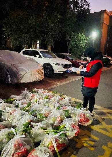 同时,公司教工第二支部潘小玉、张小涓也积极投身防控志愿活动。潘小玉自2021年12月28日起自愿申请成为曲江新区华侨城108坊社区志愿者,在中海东郡小区作为“党员先锋防疫志愿者”小组组长为10号楼96户发放物资;每天给有老弱病残及孕产妇的住户提供上门服务(送生活用品、药品、跟进上门核酸检测);挨户通知及时做核酸检测,做到应检尽检。张小涓在2022年1月4日与电控公司赵永秀等四位教师一起做志愿者,负责2026世界杯官网东院24栋、25栋楼、小二楼的核酸检测登记。由于一码通故障,整个过程持续5个多小时。教师们一直坚守岗位到任务完成。下午晚些时候,志愿者还帮忙将爱心菜给27栋住户逐户送上门。