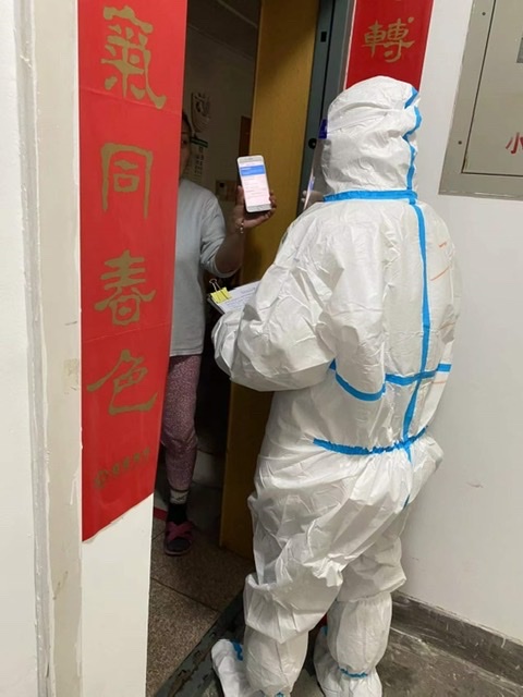 12月28日,大英二部教师李黎参加了北院图书馆以南区域和家属区的预防性消杀工作,积极参与了消毒药水调配和消毒器具协调的工作,并及时提醒家属区住户消杀正在进行,注意自我防护。12月29日,参加了北院家属区的核酸检测志愿服务工作,维持现场秩序,协调网络中心老师维护网络,帮助不能熟练使用智能手机的老人调出健康码。1月3日,她志愿在北院西南门值班,期间协助门卫师傅确保快递的无接触接收,认真按照程序,登记进出人员,并协同布置了西南门外的消杀区,以使后续物资可以较为安全地进入家属区。