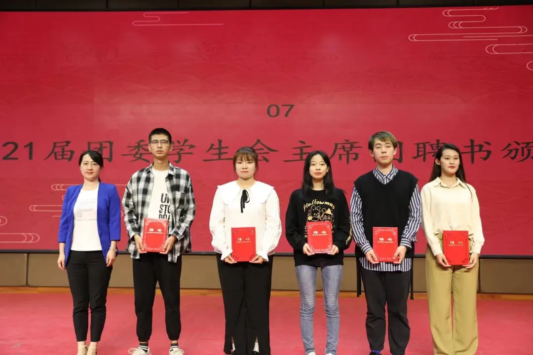 随后,张振中宣读了公司关于2020-2021学年优秀员工干部的表彰决定并为获奖者颁奖。张晶晶、李银亮、樊杰杰分别为新一届主席团和部长团成员颁发聘书。
