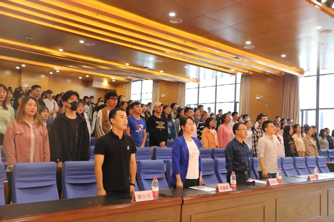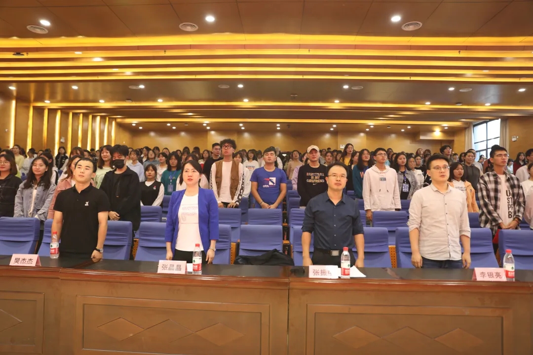 会议伊始,与会全体人员起立 ,合唱国歌,为表彰大会拉开了序幕。团委书记张晶晶宣读了团委员工会干部调整决定。