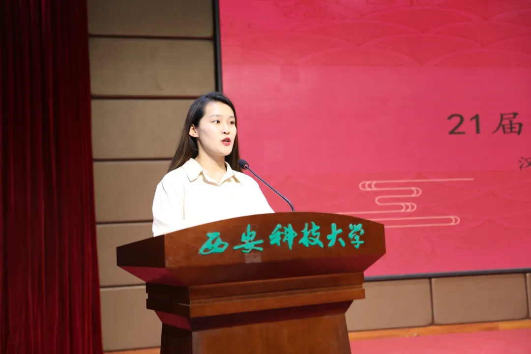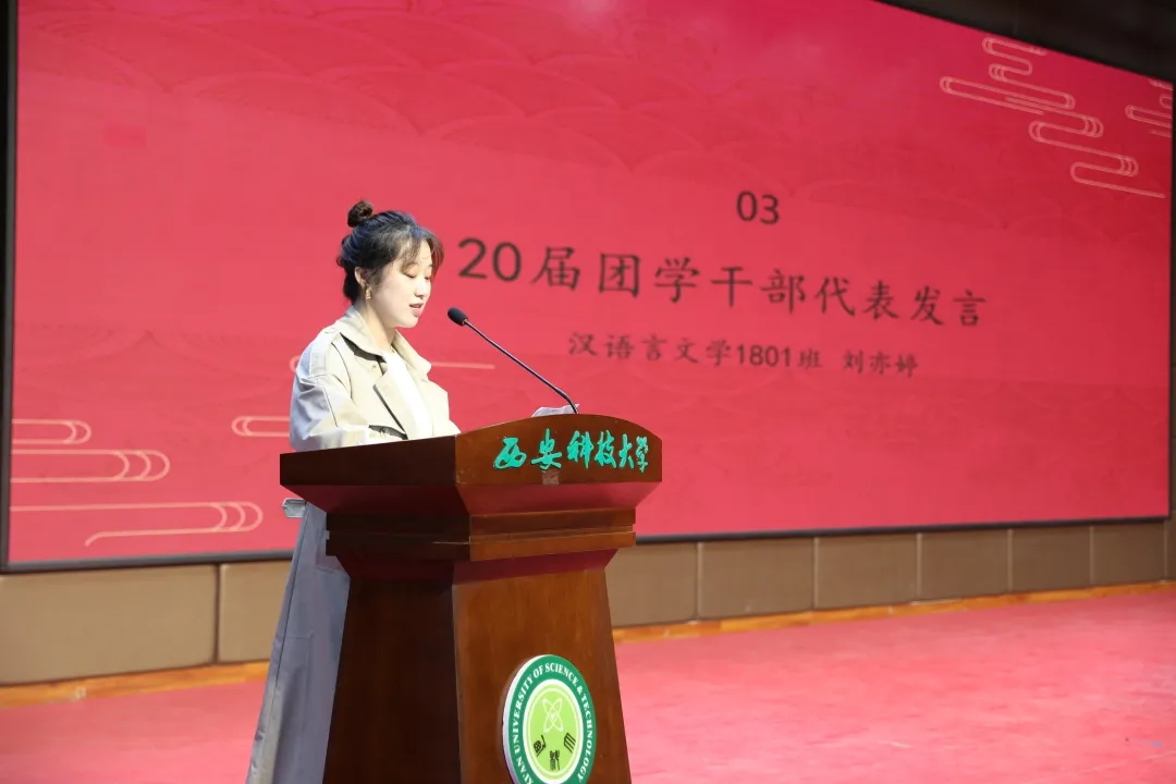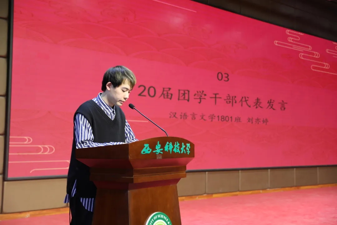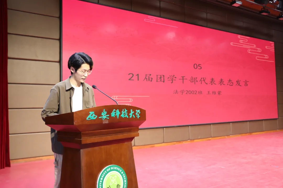 21届团委员工会干部代表王维蒙分享了一年以来在团委员工会工作的心得体会,并代表全体团学干部做了表态发言。