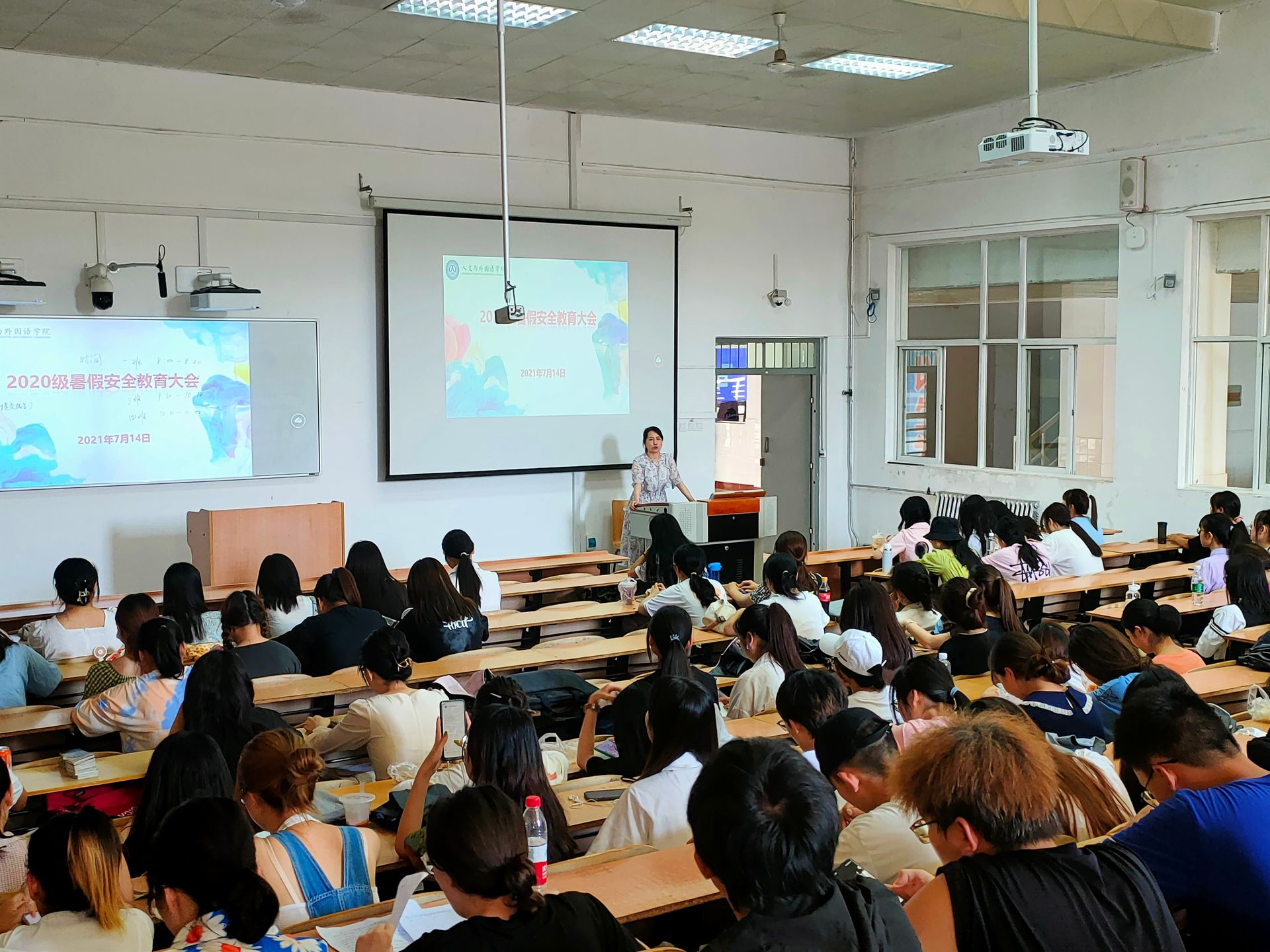 7月14日上午,2020级暑假安全教育大会在3教408召开,2020级全体在校员工参与本次大会,辅导员张晶晶主持本次会议。