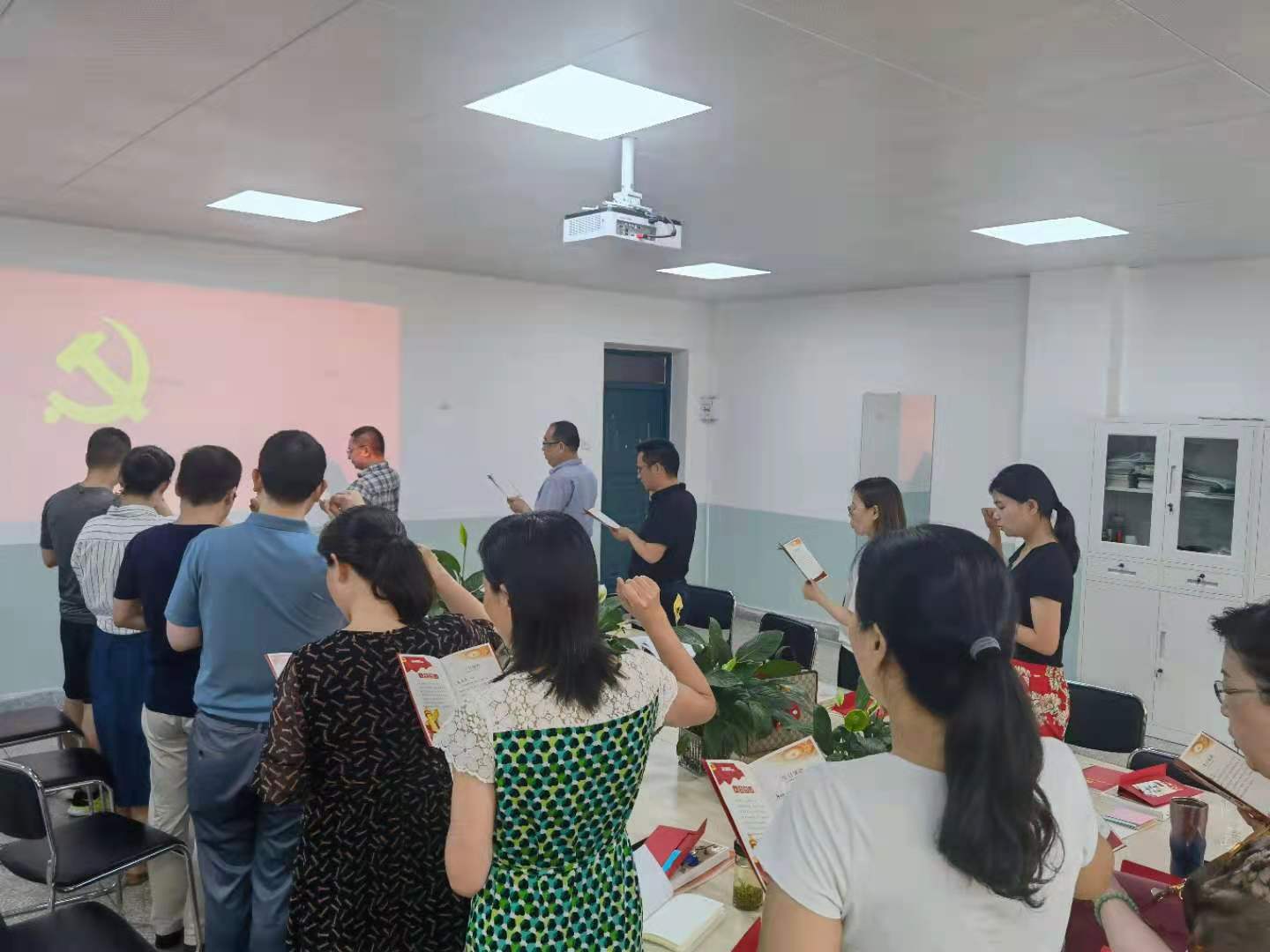 6月28日下午,英语系党支部在英语系教研室2-314举办“党员集体过政治生日”暨党内法规学习活动。公司党委书记费秀水出席并讲话,英语系全体无课党员教师参加了此次学习活动。