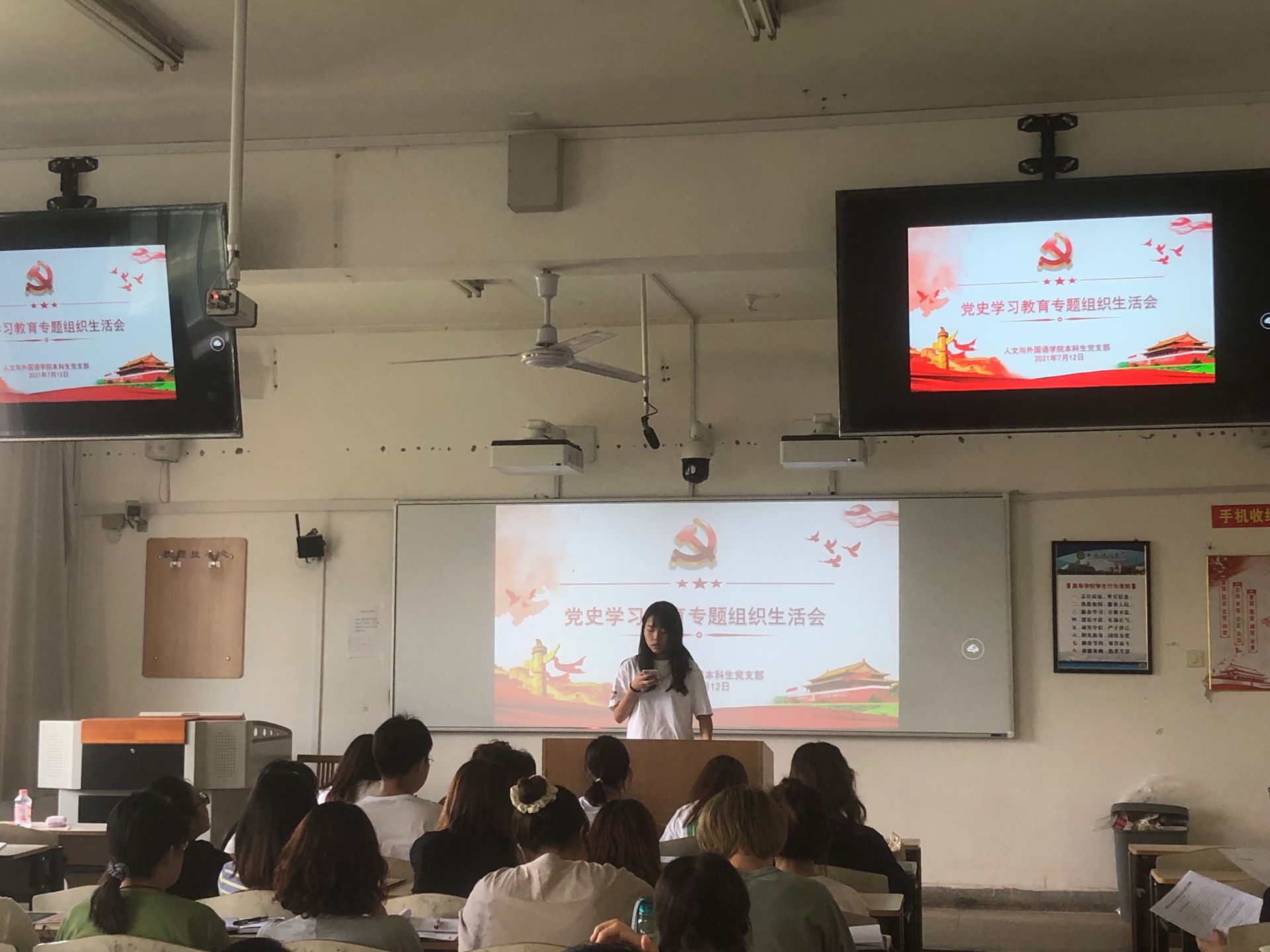 7月12日,2026年国际足联世界杯本科生党支部组织开展党史学习教育专题组织生活会,会议由本科生党支部书记李银亮主持,党委副书记张振中、全体党员、入党积极分子代表参加会议。