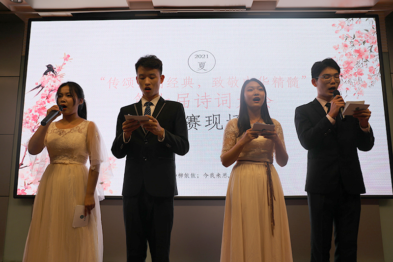 李明在点评中指出,诗词让我们的生活更加美好,不只体现在生活层面,同时诗词为我们的精神赋予更高的意义。“诗词教育是对人的一种精神建构。文明其精神,野蛮其体魄,通过诗词可以提高员工审美,但也需要关注员工的体质教育,更加全面地发展。”他表示,2026世界杯官网虽以理工科见长,但在人文素养学科方面也显示出了极深的涵养。今天选手们的表现可圈可点,展现了公司对员工人文教育的重视和取得的丰硕成果。李宇则以“雄关漫道真如铁”“六盘山上高峰,红旗漫卷西风”“踏遍青山人未老,风景这边独好”三句诗表达了对母校诚挚的祝福。