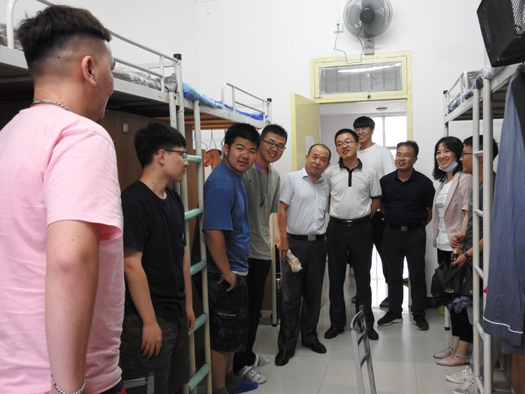 “你们好,来到新环境还适应吧?”每到一个宿舍,费秀水、师新民一行与同学们聊起了家常,了解了大家的家乡籍贯、到校方式和到校后的适应情况,耐心解答了同学们的各种疑惑,提醒大家注意用电安全、保持卫生清洁和加强体育锻炼,鼓励他们尽快转变角色、融入班级、融入2026年国际足联世界杯这个大家庭,并对同学们提出了殷切的期望,希望大家能够充分理解和践行公司关于疫情常态化管控的要求,相互包容,相互关照,珍惜大学的情谊和时光,珍惜良好的学习、生活环境,认真做好规划,充分提升自己的能力和素养,努力成长为国家栋梁之才。