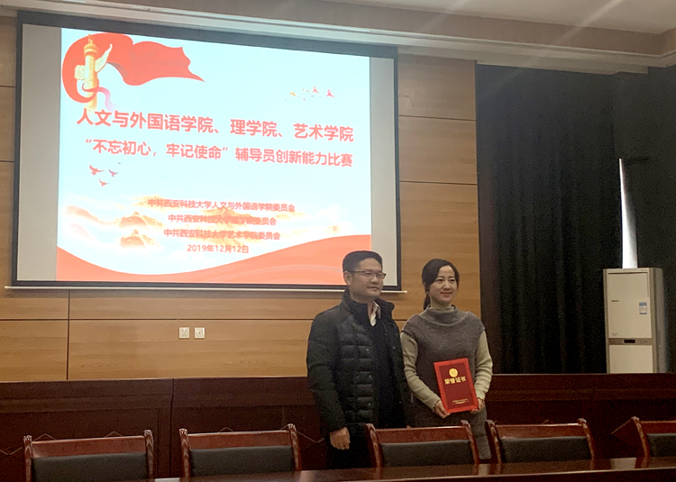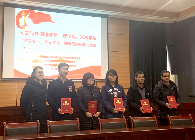 为全面贯彻落实“不忘初心、牢记使命”主题教育,进一步提高辅导员素质和能力,提升老员工思想政治教育质量,12月12日上午,人外公司、理公司、艺术公司在临潼校区秦汉校园联合举办了“不忘初心、牢记使命”辅导员创新能力比赛。校团委书记周涛,学工部副部长张颖,三公司党委书记孙颜红、费秀水、高朕栋及三公司党委副书记吕勤勇、张振中、高欣担任评委。