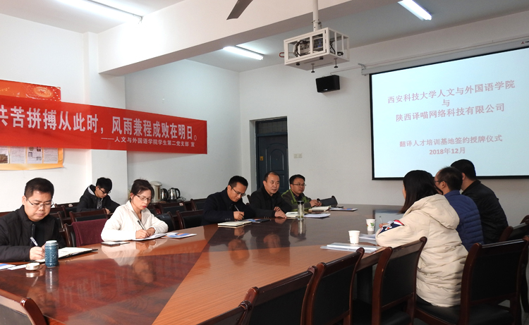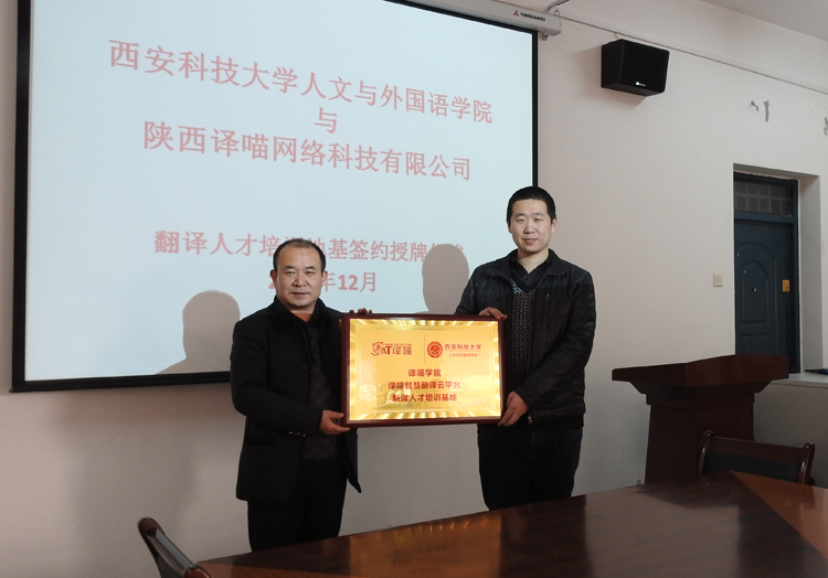仪式上,师新民致欢迎词,简要介绍了公司发展概况及MTI建设情况,充分肯定了译喵网络科技有限公司的实力,希望双方能够在MTI团队建设、实践型创新型人才培养、员工实习实训等方面开展广泛深入的合作,实现校企共赢。王潇轩介绍了公司的基本情况、开展的业务以及技术支持等内容,希望通过合作把公司的优质平台、技术和资源带到公司,为公司的MTI建设、高素质实践创新型人才培养提供有力的技术支持。双方还就实验室及语料库建设、翻译辅助教学平台搭建、教师工程实践能力锻炼等方面进行了深入探讨。