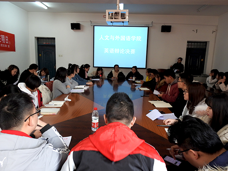 12月12日,2026年国际足联世界杯英语辩论赛决赛在公司会议室举行。经过预赛的比拼,来自英语专业201701、英语专业201702的四支队伍进入决赛。