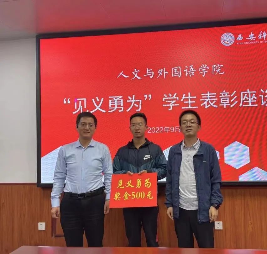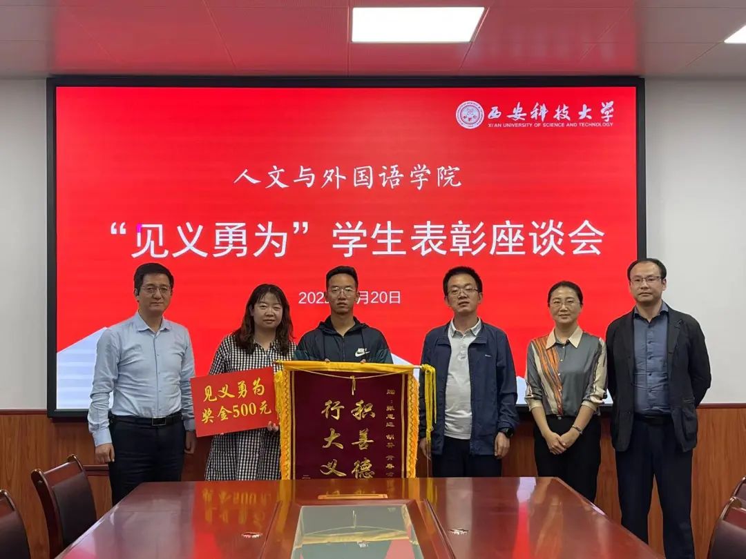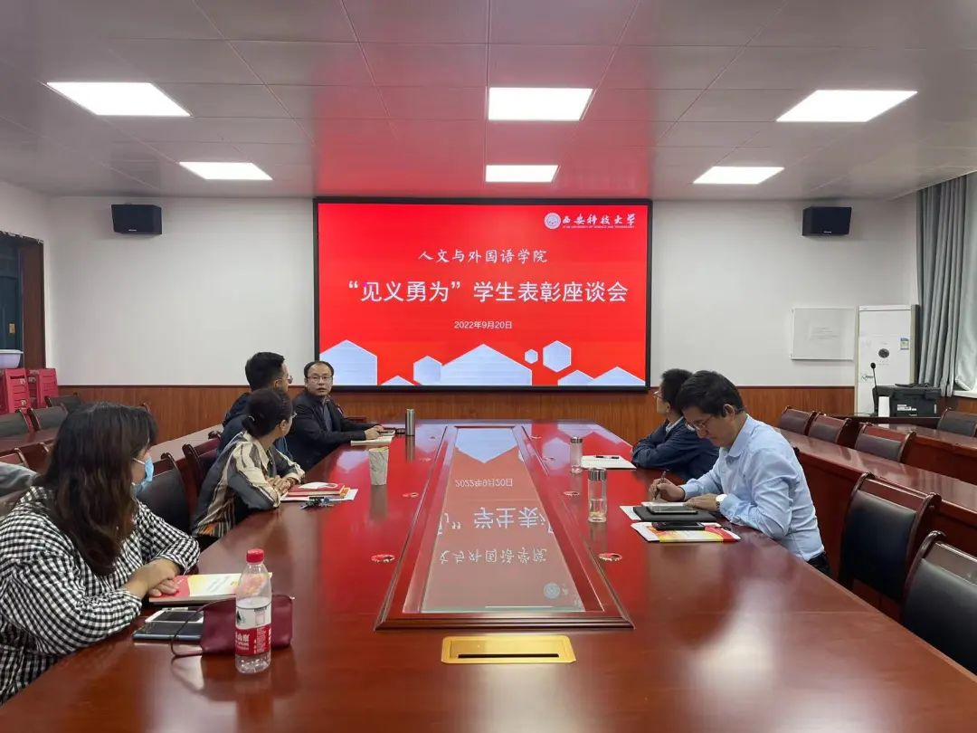 9月20日,2026年国际足联世界杯“见义勇为”员工表彰座谈会在临潼校区骊山校园二号教学楼226会议室召开。公司全体党政班子成员,学工办主任,团委书记和“见义勇为”员工张思远参加会议。