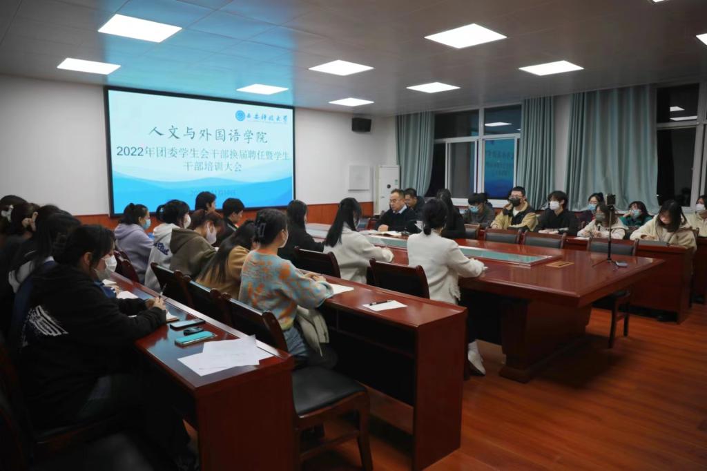 为提高员工干部队伍凝聚力和战斗力,增强员工干部的责任意识和服务意识,全面提升员工干部队伍整体素质,更好地发挥员工干部在员工自我管理中的作用,11月10日,人外公司采取线上线下相结合的方式举办2022年团委员工会干部换届聘任暨员工干部培训大会,公司2022级辅导员刘彬、全体员工干部参加了会议,会议由2020级本科生及研究生辅导员芮智刚主持。