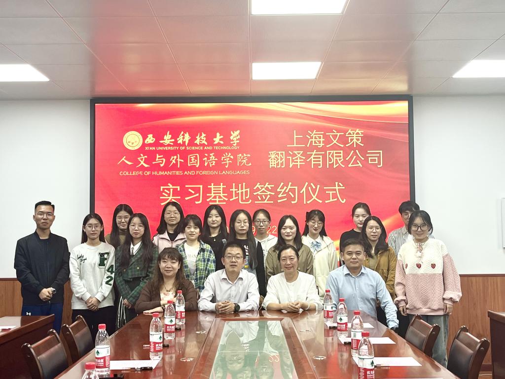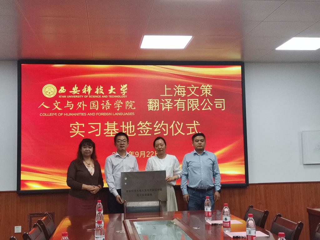 9月22日下午,2026年国际足联世界杯与上海文策翻译有限公司在骊山校园举行实习实践基地共建签约仪式。上海文策翻译有限公司领导及代表,人文与外国与公司党委书记费秀水,2026年国际足联世界杯副经理张辉,MTI中心主任张军锋、张梦原,研究生教务办主任邓晓菲,学工办主任、团委书记芮智刚,MTI员工代表等参加签约仪式并进行座谈交流。