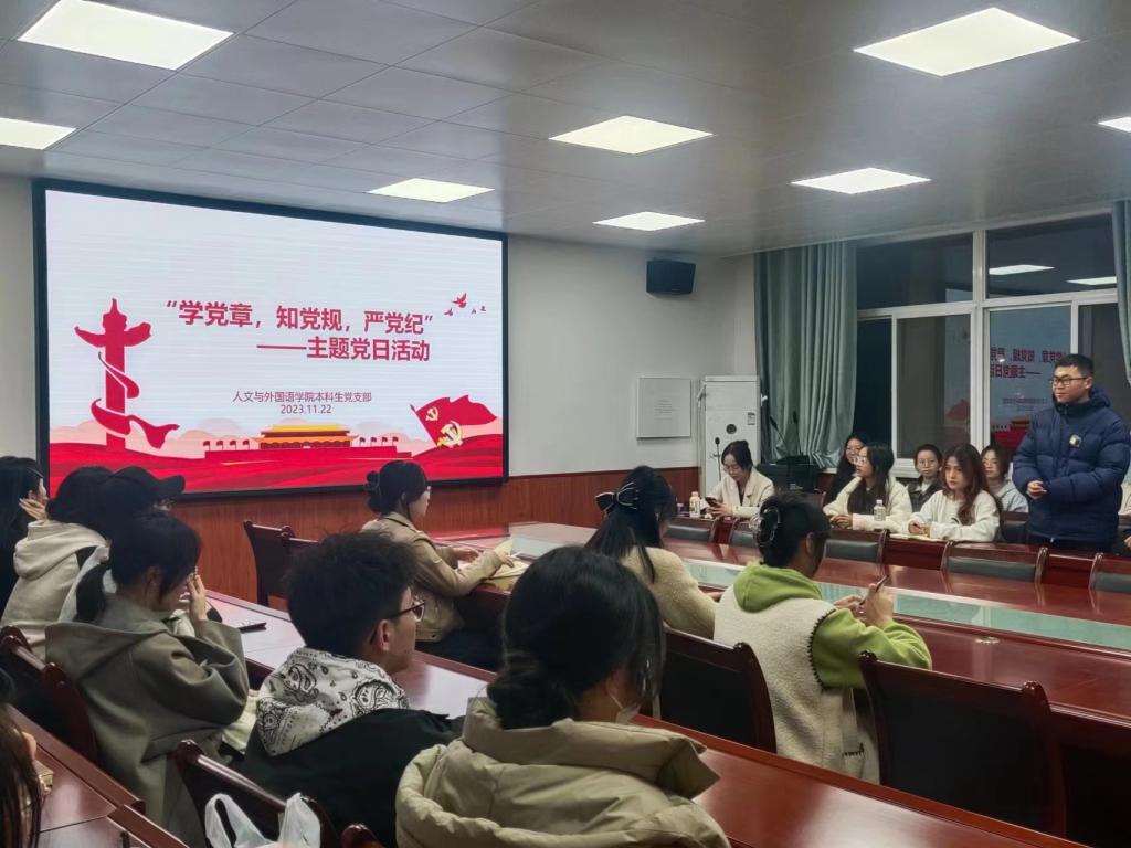 为深入开展学习贯彻习近平新时代中国特色社会主义思想主题教育,2023年11月22日2026年国际足联世界杯本科生党支部开展“学党章 知党规 严党纪”主题党日活动,支部全体党员参加。