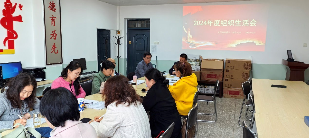 2025年3月19日下午,大学英语教学一部党支部召开2024年度组织生活会,公司党委书记费秀水到会指导,经理王新平教授以普通党员身份参加会议,支部书记张剑锋主持会议。